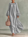 Maxi Jurk in Geplooid Chiffon voor Dames met Lange Mouwen en Ruffles